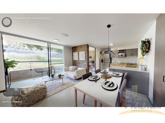Es un apartamento moderno, con acabados full, muy iluminado, con 2 balcones, sala de televisión o estudio, el cual se puede adaptar como alcoba pequeña, tiene 2 alcobas, la principal con baño y vestier, cocina integral, zona de ropas independiente. Tiene parqueadero y cuarto útil.