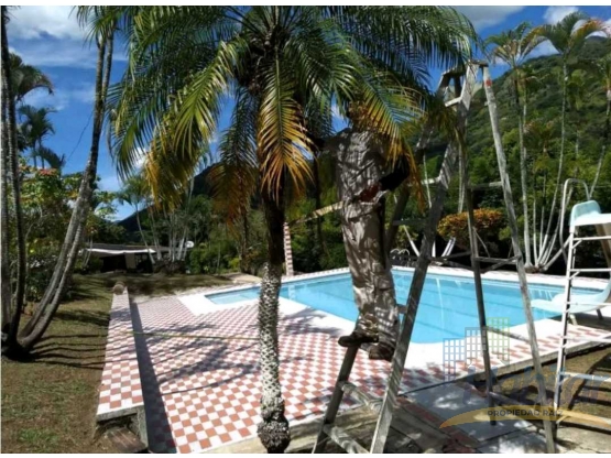 Casa principal de 120 m², 4 Alcobas y  2 baños. Cabaña pequeña de 15 m², 1 Alcoba y baño. Tiene piscina y árboles frutales.